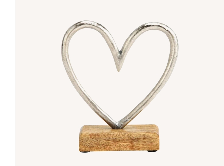 Kovové srdce na dřevěném podstavci 17x16x5 cm