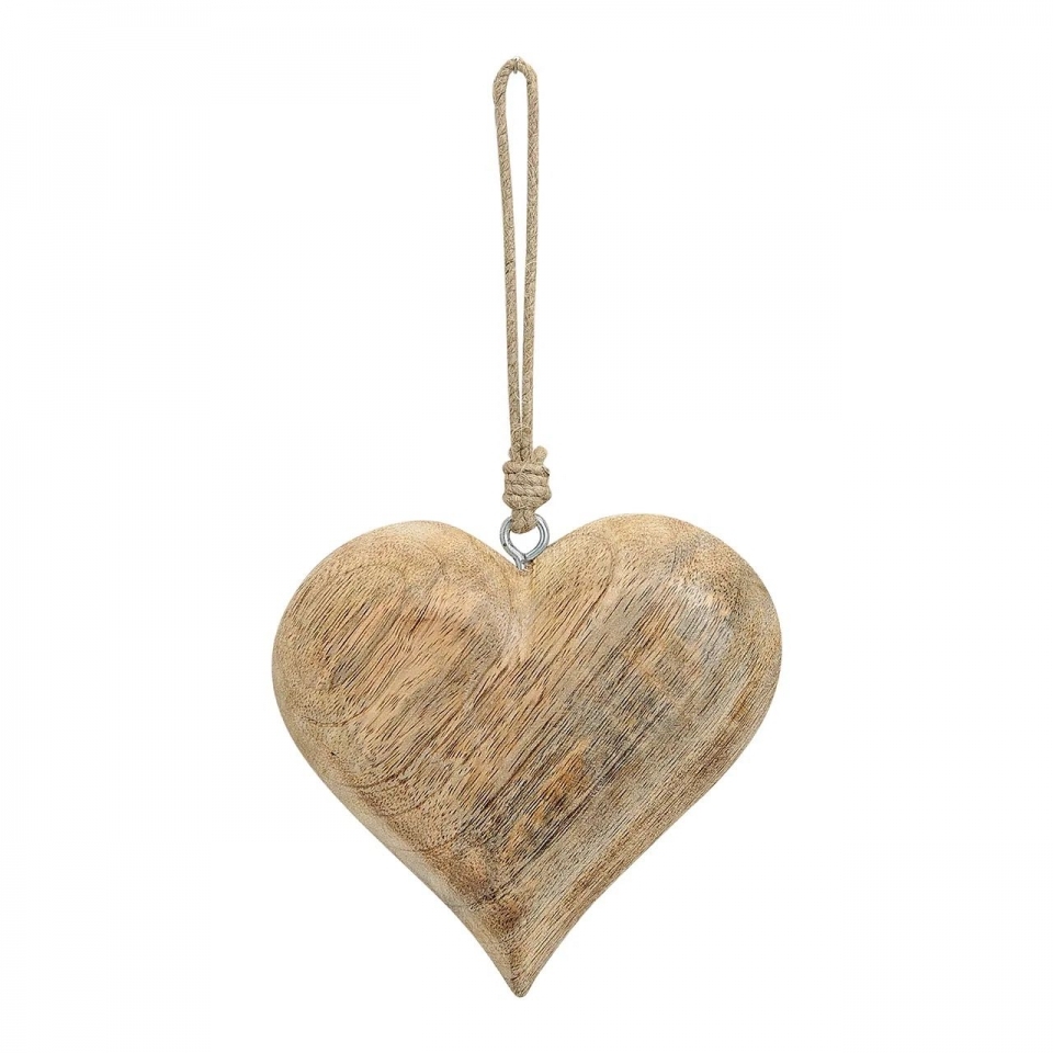 Naše hnědé závěsné srdce o průměru 15 cm je vyrobeno z kvalitního exotického mangového dřeva, známého svou pevností a krásnou strukturou. Díky svému jednoduchému a zároveň nadčasovému designu se hodí do různých stylů bydlení - od moderního po rustikální. Můžete jej zavěsit například na zeď, okno, skříňku nebo jej použít jako originální dárek, který vyjadřuje lásku a péči.