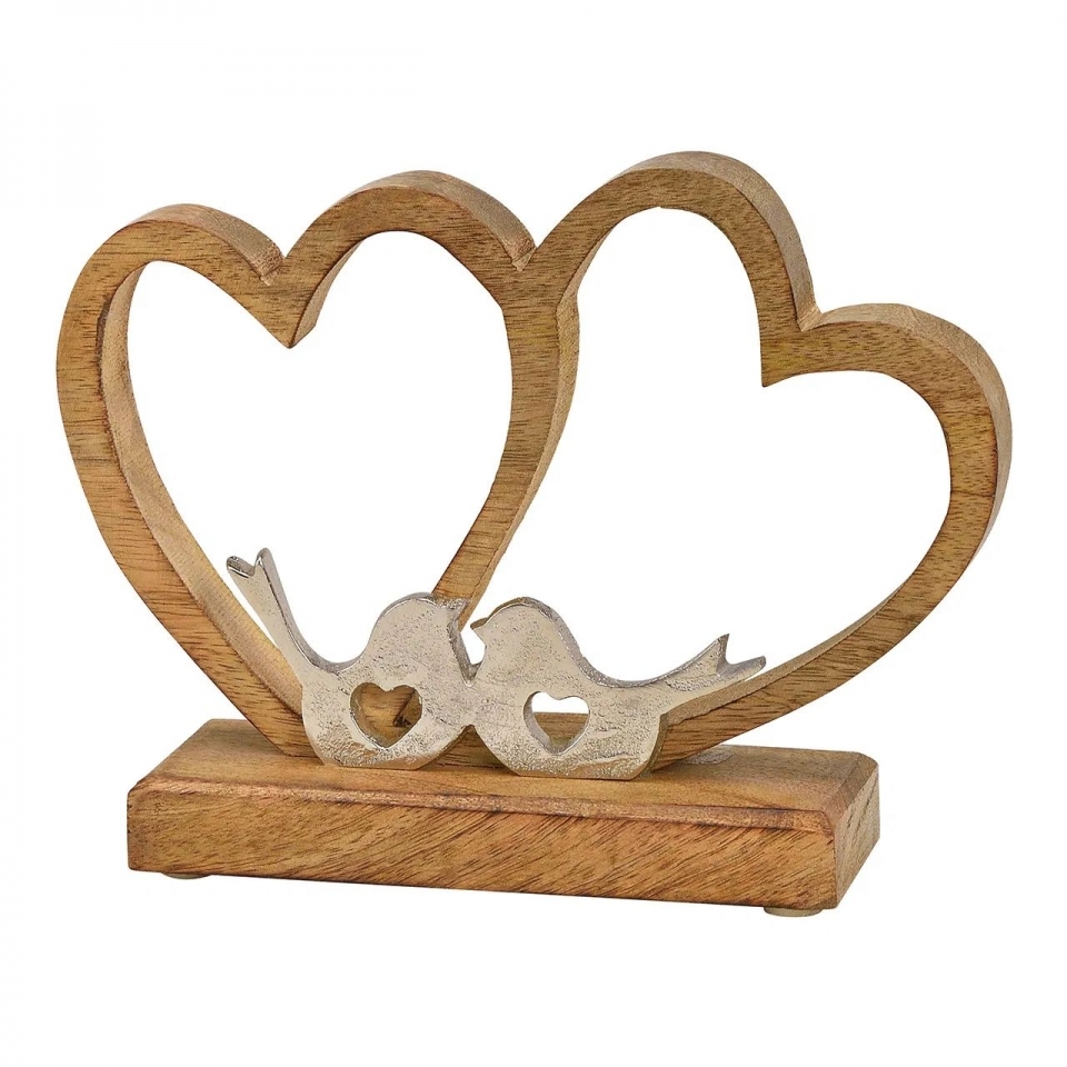 Hledáte jedinečnou dekoraci, která rozzáří váš interiér? Představujeme vám elegantní hliníkové srdce s ptáčky na rustikálním dřevěném podstavci - dokonalé spojení moderního designu a přírodních materiálů. Hlavní přednosti: