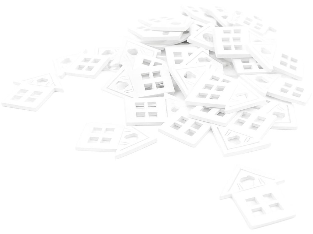 Dekorace dřevo 40 ks 29x24 mm domeček, bílá