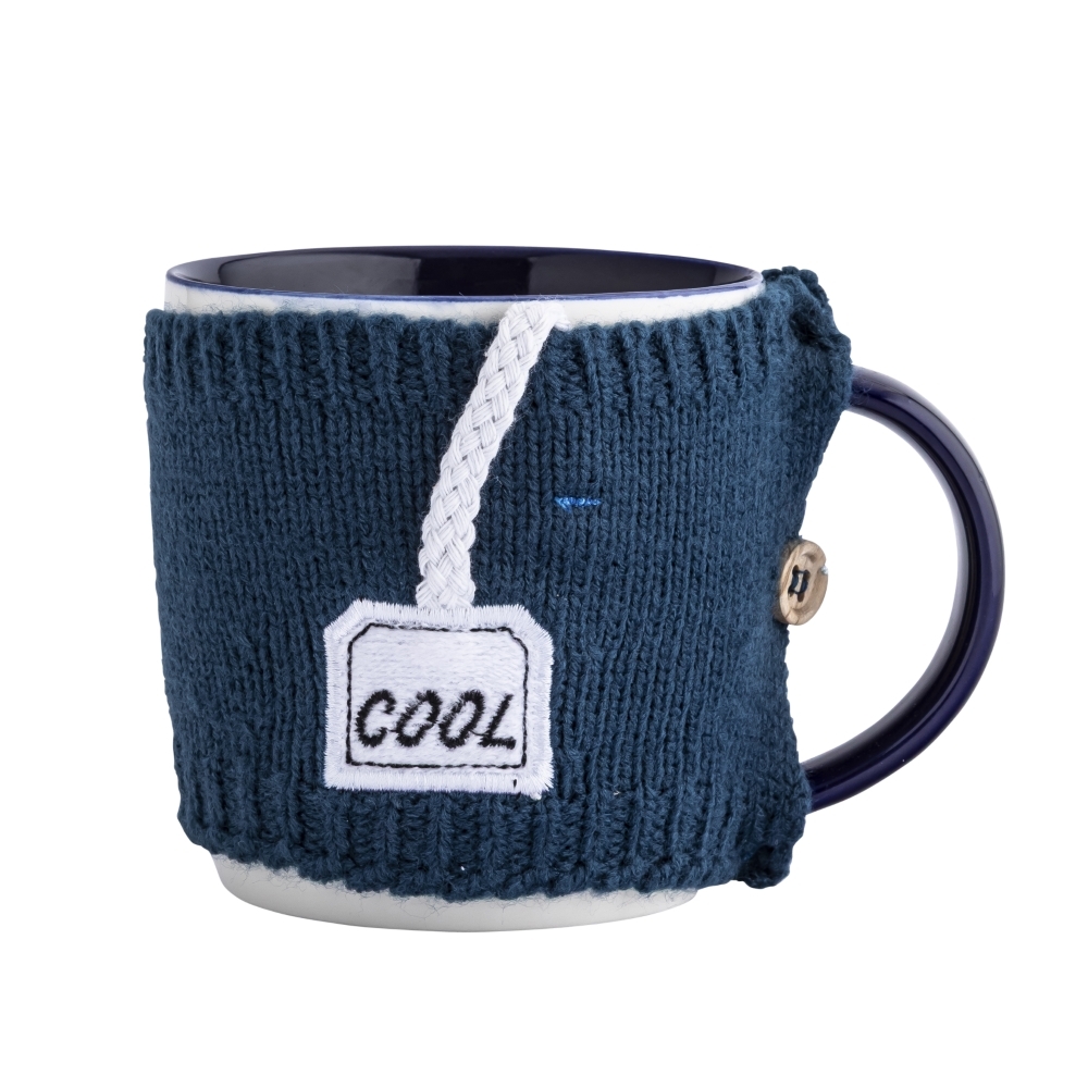 KUBEK NBC 380 ML Z OCIEPLACZEM SWETERKOWYM GRANATOWY