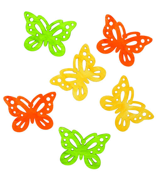 Dřevěné výseky 4cm - motýli oranžovožlutý mix 6ks