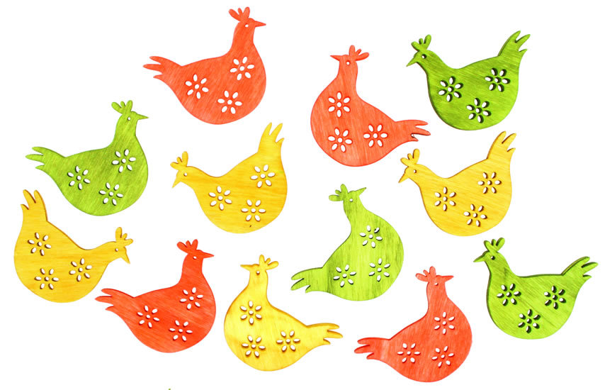 Dřevěné slepičky v jarních barvách jsou určeny k vytváření dekorací. číst celé