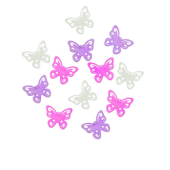 Dřevění motýli 4cm - růžovofialový mix 12ks