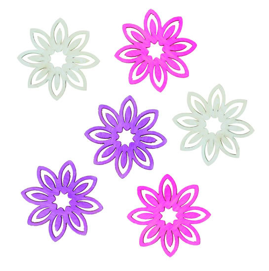 Dřevěné výseky 6cm - květy fialový mix 6ks
