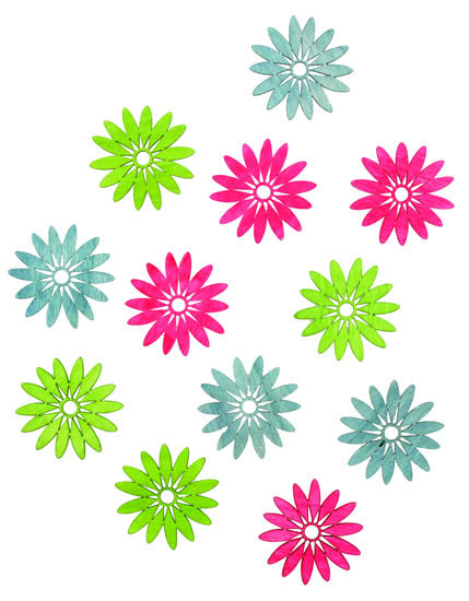 Dřevěné výseky 4cm - květy zelený mix 12ks