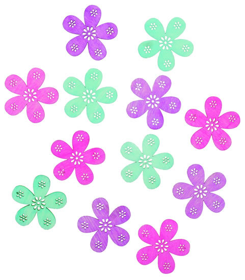 Dřevěné výseky 4cm - květy růžový mix 12ks