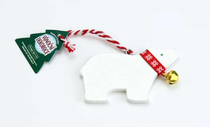 Tuto dřevěnou dekoraci lze použít jako ozdobičku na stromeček. Dopíšete-li či nalepíte na medvídka jméno, lze použít též jako stylovou jmenovku na dárek. S rolničkou a okrasnou stužkou.