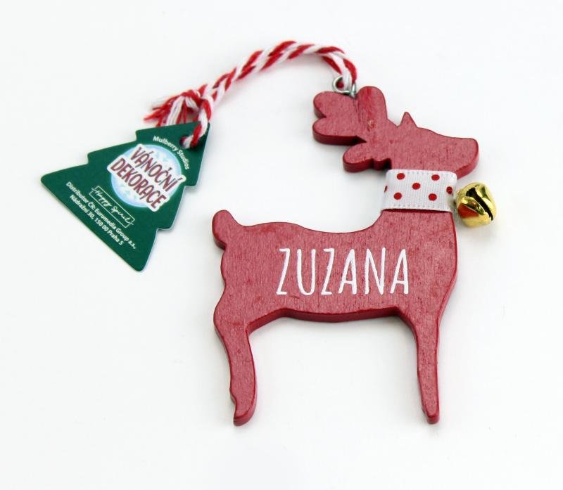 Dřevěné dekorace se jmény či texty lze použít nejen jako ozdobičku na stromeček, ale i jako stylovou jmenovku na dárek. S rolničkou a okrasnou stužkou. Sobíci pro ženy, bílí medvědi pro muže.