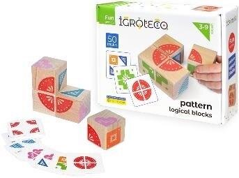 W zestawie: 4 drewniane kostki, 25 dwustronnych kolorowych kart ze schematami do układania číst celé