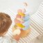 Maxi zostup nadol! Ideálne pre deti vo veku 3 a viac rokov, tento rozkošný zvukostrom je stavebnou hrou aj hrou s jemným zvukom. Je navrhnutý tak, aby rozvíjal jemnú motoriku detí a ich chápanie príčin a následkov. Na začiatok základ montuje dospelý človek: je to kmeň stromu, na ktorom sa pekne uhniezdi pružinový vtáčik. Potom najmenší použijú priloženú modelovú kartu na vloženie listov stromu. K dispozícii je 14 rôznych farieb a veľkostí. Keď je krásny strom zostavený, je čas na dlho očakávaný zostup! Súčasťou hračky sú 2 drevené loptičky: nechajte ich skotúľať sa po listoch, aby ste objavili kaskádu jemných, opakujúcich sa zvukov. Jedna po druhej, alebo oboje súčasne, guličky je tak prijemné sledovať, ako klesajú! V cieli skončia v záreze v základni stojana. Vzdelávacia, poetická a nežná hra! Jemné farby, plsť a prírodné drevo dodávajú tejto 36 cm vysokej guľôčkovej dráhe jeho čaro. S priemerom 19,3 cm je to aj krásny dekoračný predmet do detskej izby. Tento veľký strom, ktorý je súčasťou našej kolekcie Sweet Cocoon, je vyrobený z dreva z lesov obhospodarovaných udržateľným spôsobom. Tak smelo do toho!