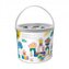 Po zabawie klocki można łatwo schować w wiaderku. Pokrywka wiaderka pełni również funkcję sortera kształtów, umożliwiając umieszczanie klocków w wiaderku według odpowiednich kształtów.