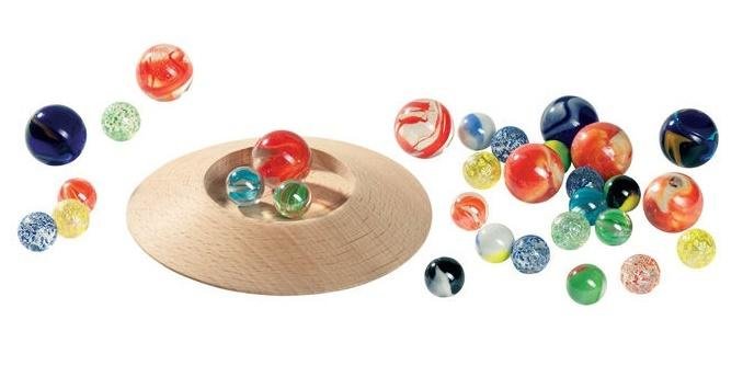 Prožijte hodiny zábavy s tradicí - skleněné kuličky a dřevěný talíř pro každou hru!