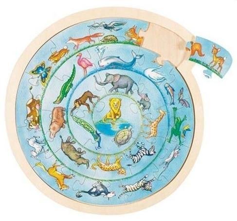Układanka - Parada zwierząt obsahuje dřevěnou rámovou základnu o průměru 30,7 cm a 27 pečlivě vyrobených prvků. Díky certifikátu CE a souladu s normou EN-71 je produkt bezpečný pro děti a splňuje všechny požadavky EU na dětské hračky. Puzzly podporují rozvoj jemné motoriky, představivosti a trpělivosti. Rám pomáhá dětem snadno skládat puzzle a rozvíjet tak logické myšlení již od raného věku.