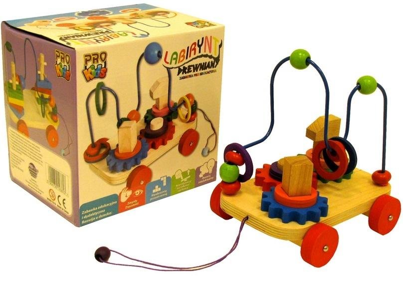 Labirynt drewniany - Przeplatanka na wózeczku do ciągania.