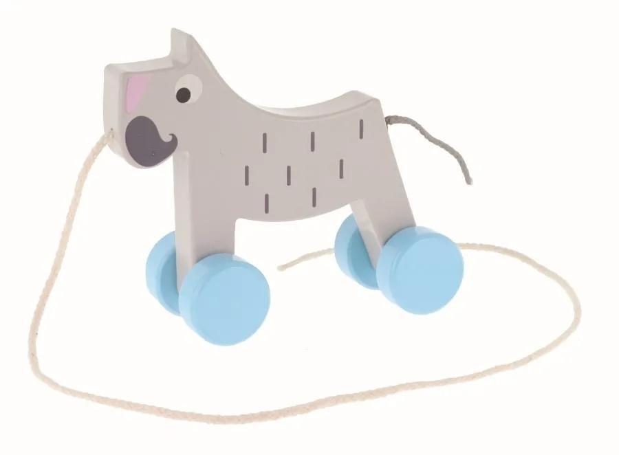 Piesek z bajki Bobaski i Miś to zabawka wykonana z naturalnego drewna! Zamontowany przy zabawce sznureczek, według opinii psychologa, ma idealną długość dla małego dziecka, które rozpoczyna naukę chodzenia. Dodatkowo, zabawa z pieskiem rozwija odruch chwytania, dzięki ergonomicznemu kształtowi zaprojektowanemu specjalnie dla małych rączek. Piesek zapakowany jest w estetyczne przezroczyste opakowanie, które eksponuje całą zabawkę.