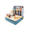 množství dřevěných komponentů od dřevěných destiček s dírkami, po šroubky a