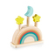 kolíky v designu měsíce a hvězd jsou upevněné v dřevěném podstavci s pružinami.