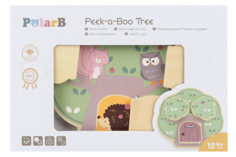 Tato interaktivní překlápěcí knížka s motivem zvědavých zvířátek, která se skrývají za dveřmi domku na stromě, láká děti k poznávání a rozvíjení smyslových dovedností hravou formou. Díky kvalitnímu dřevěnému provedení je hra odolná a zároveň příjemná na dotek, což zaručuje dlouhodobou zábavu.