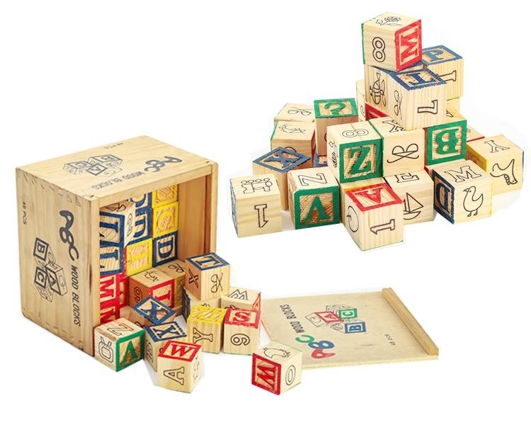 Dřevěná stavebnice s čísly a písmeny v kostce Tulimi, 48 ks