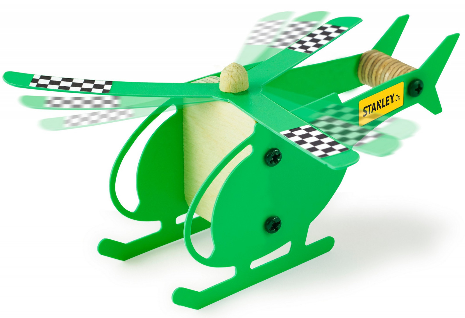 Dřevěná stavebnice OK040-SY od firmy Stanley Jr. v podobě vrtulníku poskytne vašemu dítěti tvořivou interakci a s ní nekonečné hodiny hry a zábavy. Prostřednictvím doteku se děti dostávají do kontaktu se dřevem jako přírodním materiálem, což posiluje jejich vztah k životnímu prostředí. Tato odolná a trvanlivá hračka z předem nařezaných dřevěných dílů, plastových dílů, šroubků a obtisků prokazatelně pomáhá rozvíjet jemnou motoriku, představivost i trpělivost dítěte. Když se soustředí na složení a zhotovení hračky, tak si navíc rozvíjí svou pozornost a schopnost koncentrace. Dřevěné hračky Stanley nabízejí inspiraci, zábavu a poučení a umožňují rodinám strávit čas společnou hrou. Tato ekologická hračka je vhodná pro děti od 3 let.