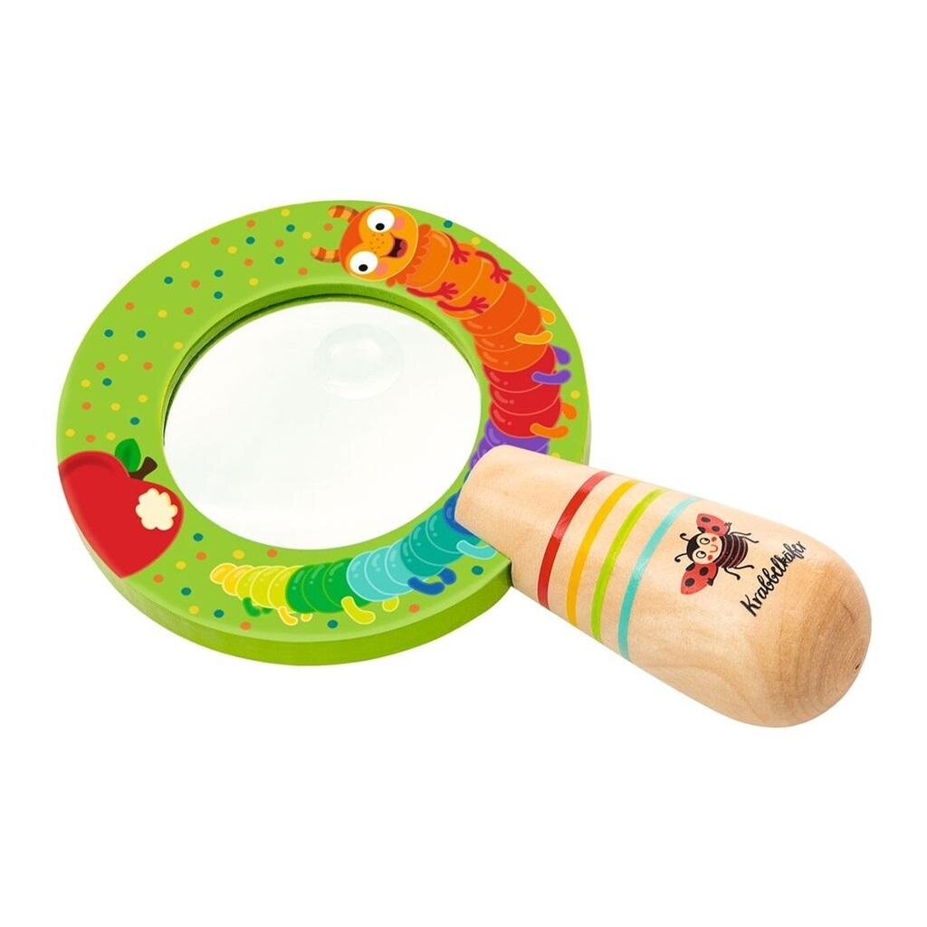 Drewniana Lupa Dla Dzieci 3x Zostań wielkim obserwatorem. Ucz się i baw z nami. Co tam pełza? W naturze jest wiele do odkrycia! Niezależnie od tego, czy są to małe owady, czy kwiaty, obiekty można powiększyć 3x za pomocą dużego, ręcznego szkła powiększającego. Dzięki temu kolorowa ręczna lupa staje się niezastąpionym narzędziem dla małych badaczy i odkrywców w ogrodzie, lesie i na łące. Idealny na ekscytujące wyprawy badawcze z przyjaciółmi lub rodziną na łonie natury! Poręczne, wytrzymałe szkło powiększające 3x. Uchwyt lupy wykonany jest z wysokiej jakości drewna brzozowego odpowiedniego dla rączek dziecka. Zachęca dzieci do obserwowania natury. Bajecznie dekorowany w biedronki, dżdżownice lub jabłuszka. Idealny prezent dla małego odkrywcy. Wymiary: 16 cm x 10 cm x 10 cm. UWAGA: Nie nadaje się dla dzieci poniżej 3 lat.