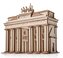 Drewniane puzzle 3D w kształcie Bramy Brandenburskiej która mieści się w Berlinie. Zestaw został wykonany z wysokiej jakości sklejki i jest w postaci arkuszy z wstępnie wyciętymi i ponumerowanymi elementami. Przed montażem należy oddzielić części od wykroju, a następnie połączyć bez użycia kleju, zgodnie ze szczegółową instrukcją dołączoną do opakowania. Zabawka edukacyjna, która po złożeniu może również służyć jako dekoracja. Uwaga - zestaw może zawierać małe elementy, podczas składania puzzli, dzieci muszą pozostać pod opieką dorosłych.