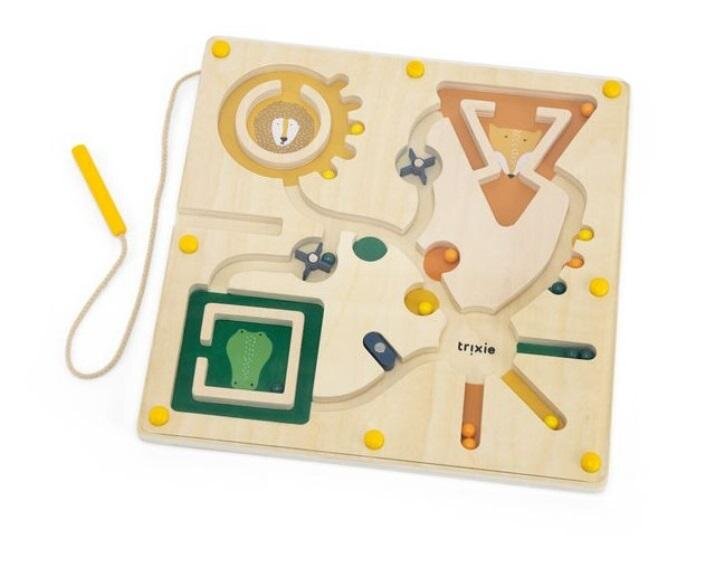 Przejdź przez labirynt i przenieś wszystkie kolorowe kulki we właściwe miejsce! Za pomocą magnetycznego rysika dzieci mogą prowadzić kuleczki w różnych kolorach i pokonywać kręcące się przeszkody. Rysik jest przymocowany do planszy za pomocą bawełnianego sznureczka, aby zapobiec jego zgubieniu. Labirynt Magnetyczny to zabawna gra, która wymaga skupienia, pomaga dzieciom rozwijać umiejętności motoryczne i wpływa na rozwój logicznego myślenia.