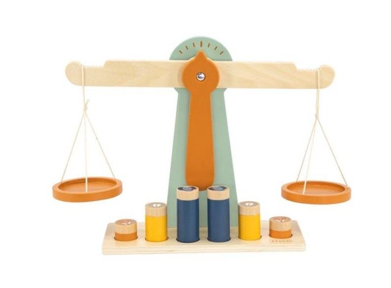 Przepiękna Waga Szalkowa Drewniana o wyjątkowej kolorystyce z sześcioma odważnikami to doskonały wybór dla udanej zabawy w sklep. Dzieci nie tylko bawią się nią wspaniale, ale również uczą się pojęć miar i wag, spędzając przy tym miło czas. Waga szalkowa to harmonijne połączenie tradycji, kreatywności oraz nauki poprzez zabawę, a także zrównoważona alternatywa dla plastiku. Zabawka jest wykonana z najwyższej jakości drewna bukowego i sklejki pochodzącej z odpowiedzialnych źródeł, co przekłada się na bezpieczeństwo dzieci i przyjazność dla środowiska. Wiek: 3+