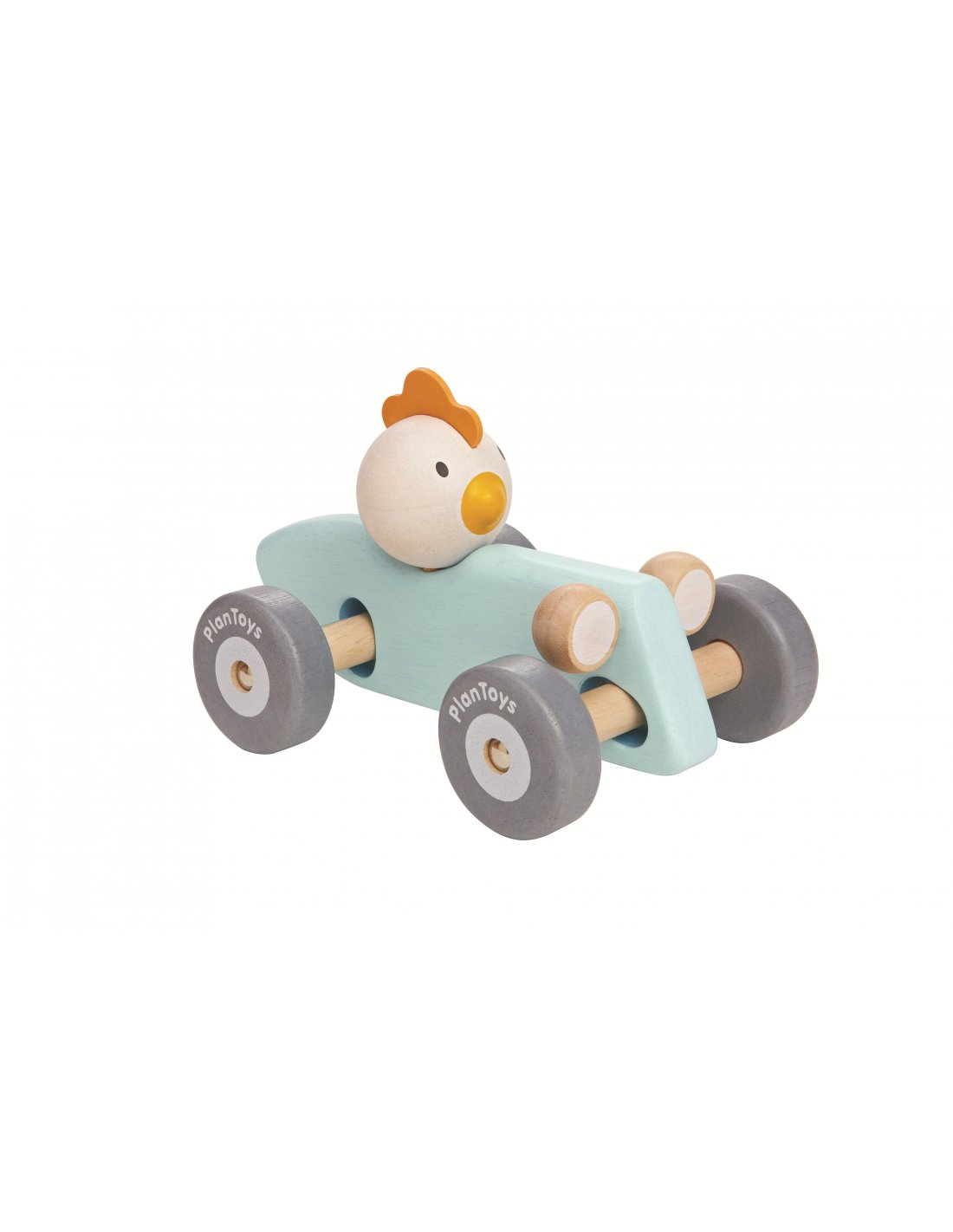 Užij si skvělou zábavu s tímto kuřecím závodníkem. Křivky vozu jsou detailně propracované pro lepší úchop a manipulaci. PLAN TOYS Plan Toys je již 30 let úspěšně fungující firma v oboru výroby vysoce kvalitních ekologických hraček. Firma vznikla v roce 1981 na jihu Thajska a v této oblasti funguje dodnes. Ve své produkci využívá dřevo z kaučukovníků, které již neprodukují latexové mléko. Společnost toto dřevo vykupuje od farmářů, pro které již nemá žádnou hodnotu, ale rovněž dbá na to, aby byly opětovně vysazovány stromy nové. Právě použitím těchto stromů, je výroba trvale udržitelná, ekologická a navíc z vysoce kvalitního materiálu. Výrobní proces je navržen tak, aby se za využití solární energie a biomasy maximálně šetřila energie a nedocházelo k žádné produkci odpadu. PlanToys používá ve své výrobě hraček lepidlo bez formaldehydů a barvy na vodní bázi, které jsou bezpečné, bez olova a jiných těžkých kovů. Pro obaly a tištěné materiály se využívá recyklovaný papír. Hračky jsou vyráběny s ohledem na ekologickou udržitelnost a mají certifikace ISO 9001 (pro vysokou kvalitu produktů) a 14001 (management životního prostředí). Firma získala akreditaci o sociální odpovědnosti (OHSAS 18001), což vypovídá o perfektním vztahu k zaměstnancům a vytváření bezpečného a zdravého pracovního prostředí. Firma zaměstnává mimo jiné také osoby se zdravotním postižením, pravidelně sponzoruje mnoho aktivit pro děti, jako jsou dětské kluby, hřiště, knihovny a herny, ale dokonce i spolupracuje s maminkami dětí s různým postižením a spolu s nimi vytváří hračky, které mohou těmto dětem pomoci. Hračky od PlanToys podporují hru, kreativní mysl a učí děti o světě kolem nás. O jejich úspěchu vypovídají také desítky ocenění z celého světa.