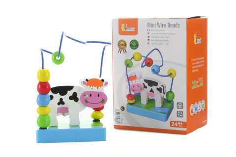 Dřevěný labyrint s kravičkou. Kravička má ohýbací hlavičku. Rozměry labyrintu cca 10 x 7 x 15 cm. Rozměry balení cca 17 x 9 x 12 cm. Věk 2+