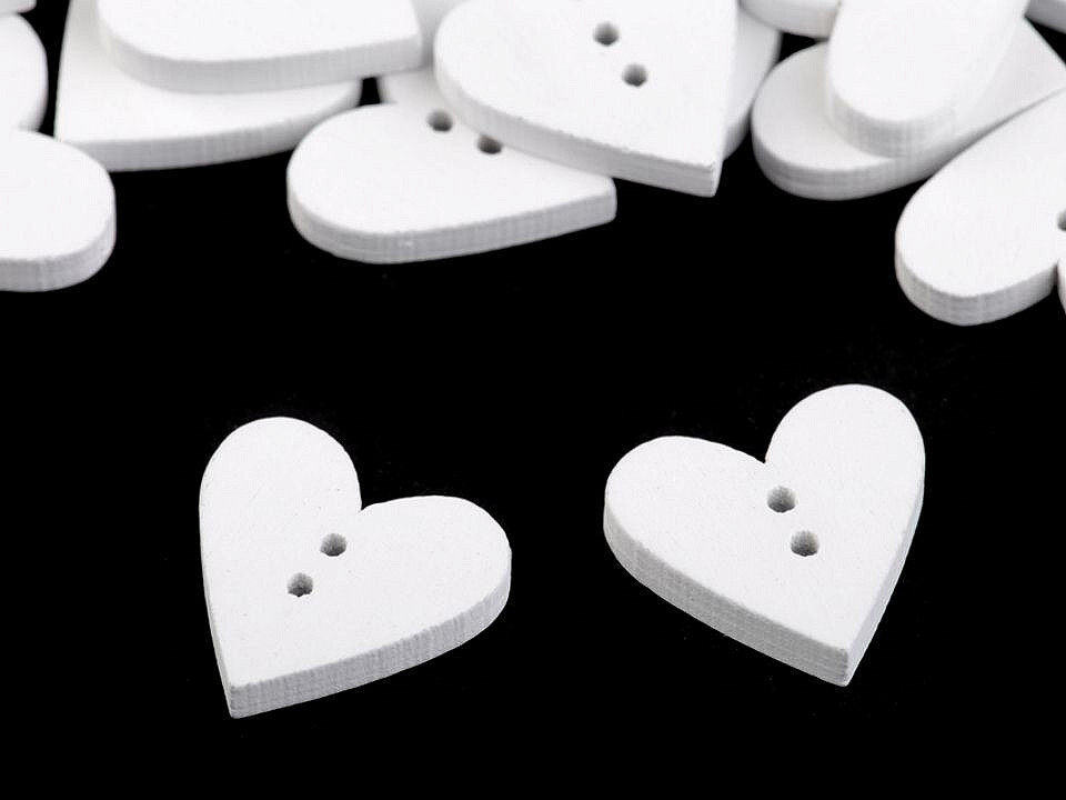 Dřevěný dekorační knoflík srdce - 50 ks - 1 bílá