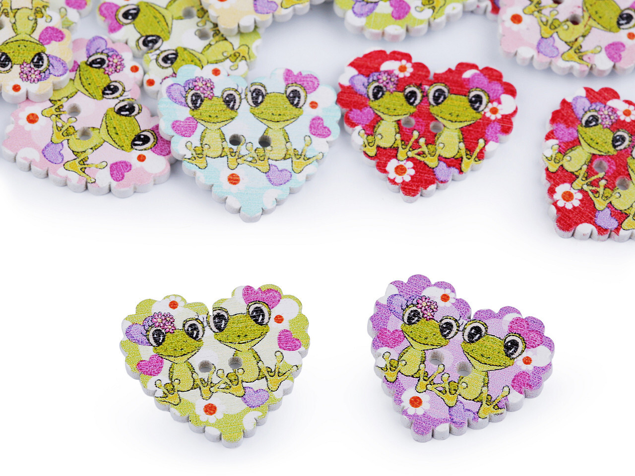 Dřevěné dekorační knoflíky s párem žabiček jsou vhodné ke zdobení alb, přáníček, krabiček, rámečků, květináčů, k balení dárků i k netradičnímu svatebnímu aranžování.Můžete je lepit nebo přišívat.Motiv je jednostranný. číst celé