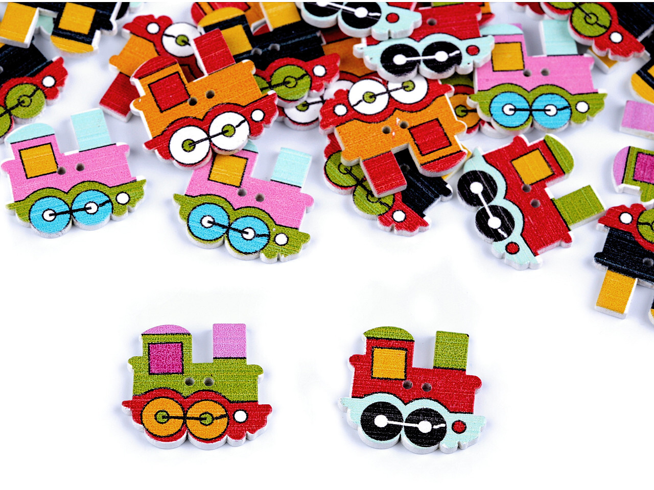 Roztomilé dřevěné knoflíky v podobě mašinky si zamilují převážně děti. Můžete s nimi ozdobit tašky, pytlíky, kapsáře, foto rámečky, deníky, pozvánky na oslavy apod.