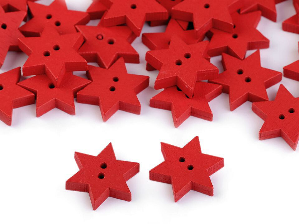 Dřevěný dekorační knoflík hvězda - 50 ks - 3 červená