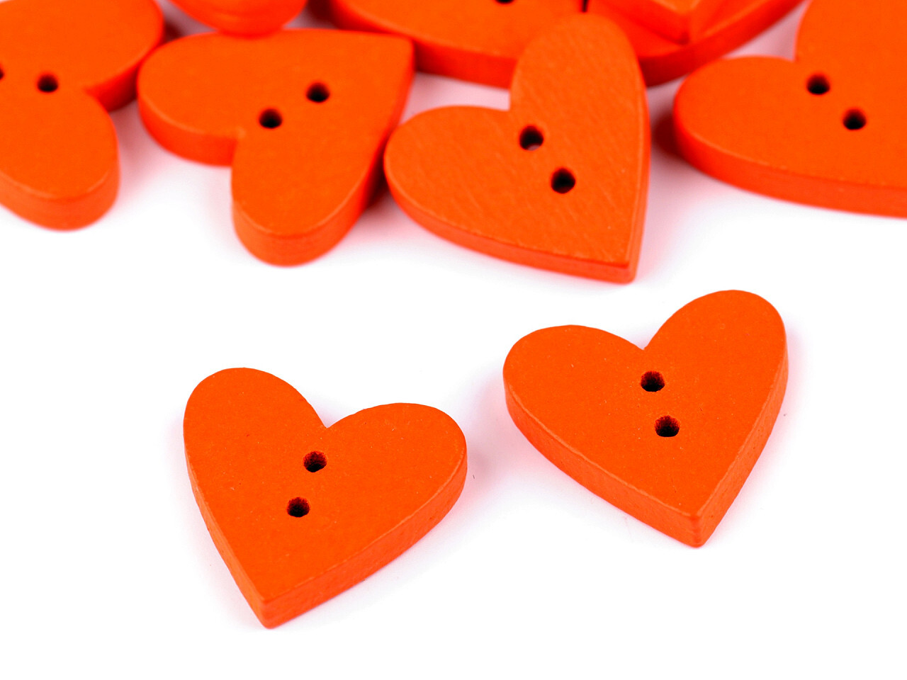 Dřevěný dekorační knoflík srdce - 50 ks - 9 oranžová