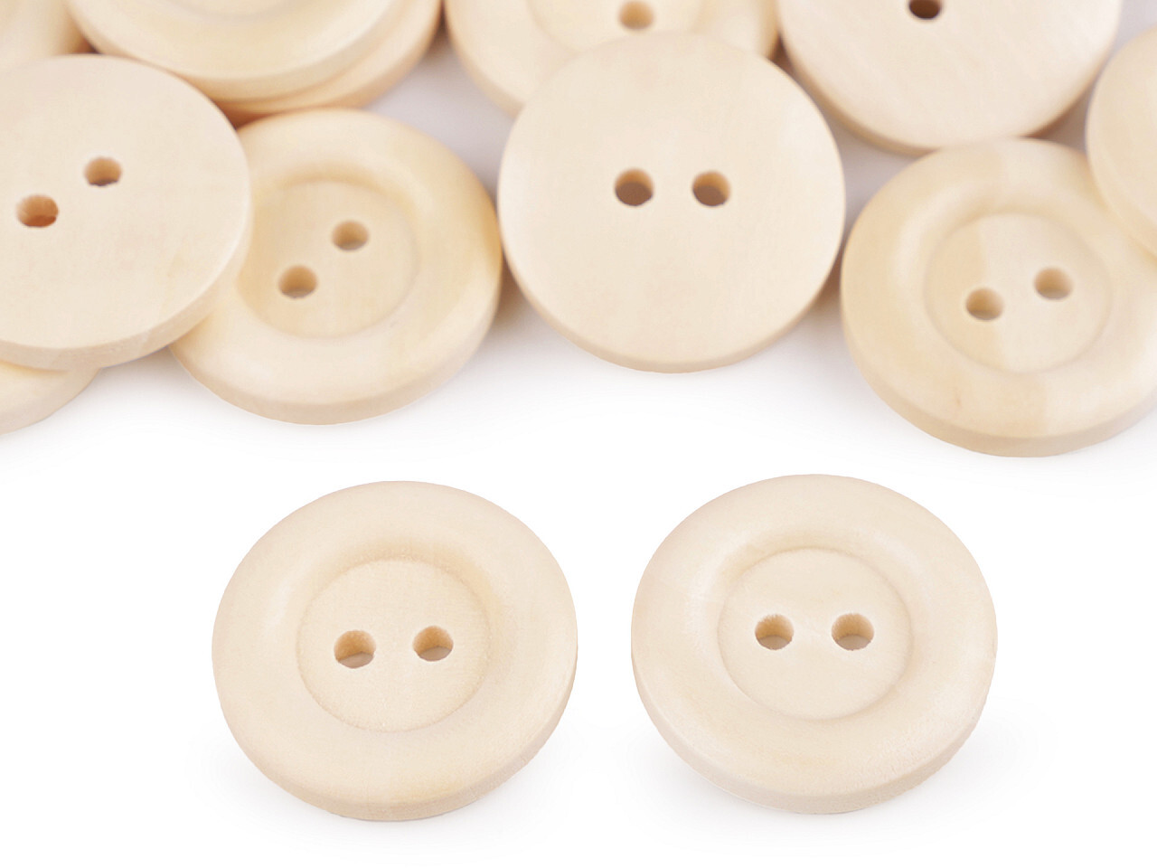 Dřevěný knoflík dvoudírkový velikost 36" - 50 ks - 1 přírodní sv.