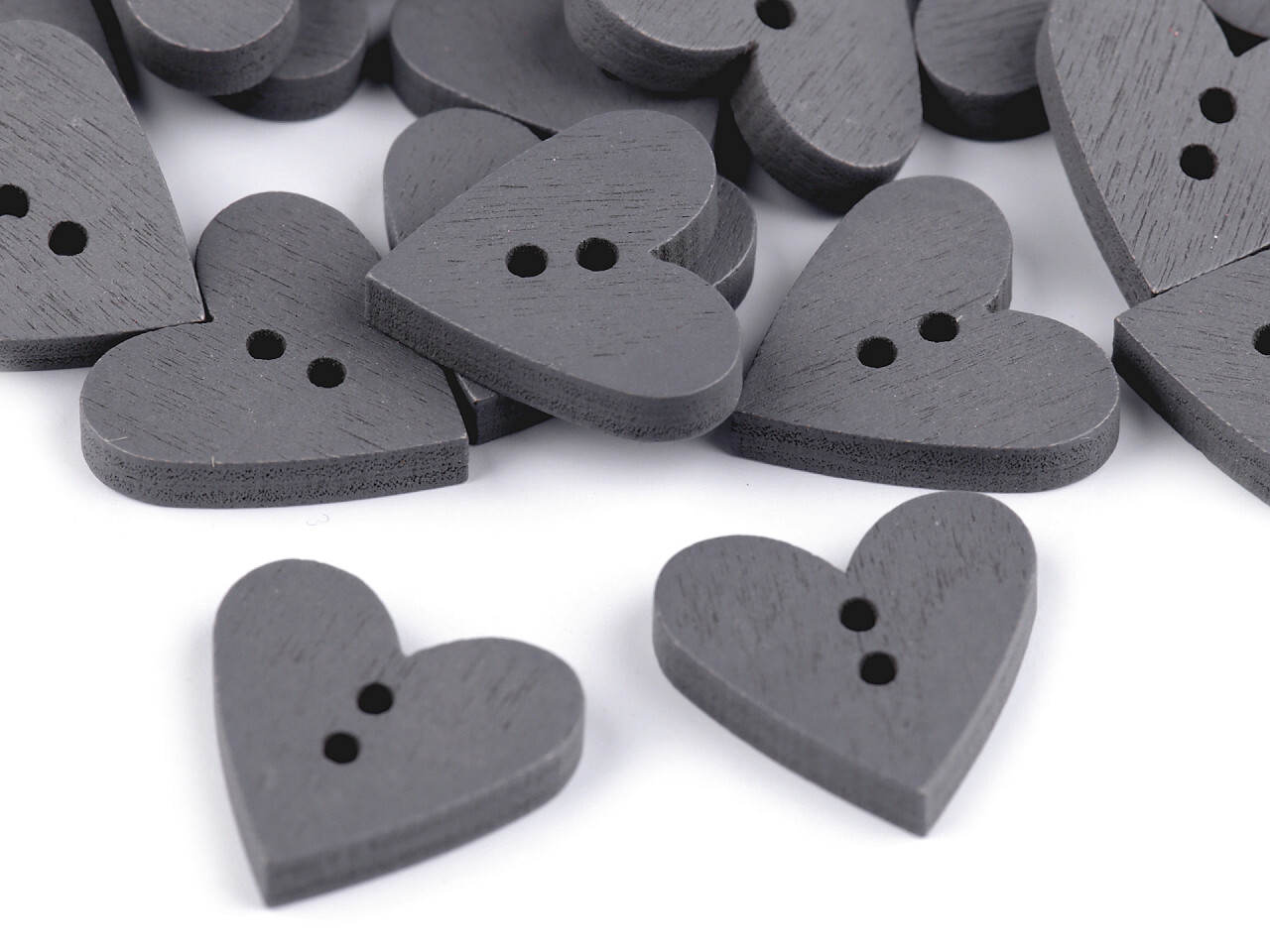 Dřevěný dekorační knoflík srdce - 50 ks - 3 šedá tmavá