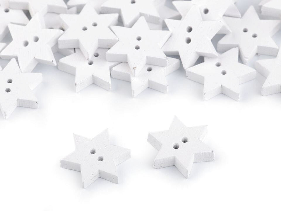 Dřevěný dekorační knoflík hvězda - 50 ks - 1 bílá