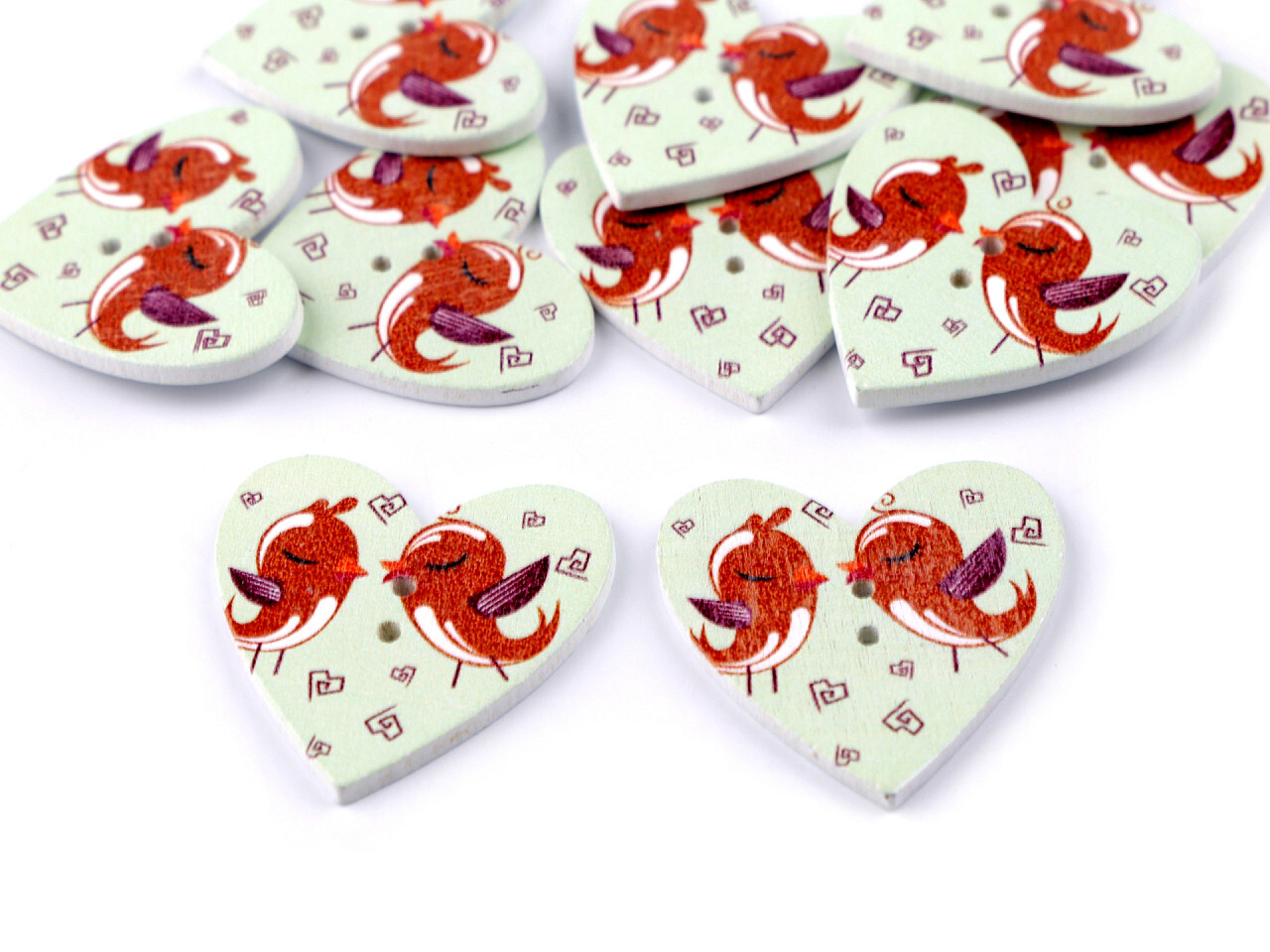 Dřevěný dekorační knoflík srdce - 30 ks - 2 zelená past.sv.
