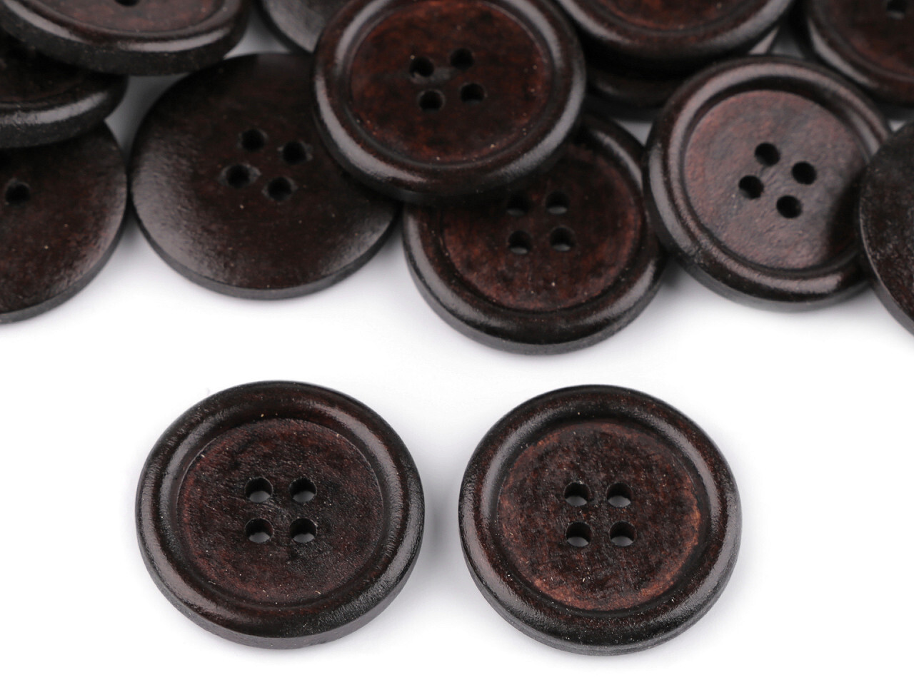 Dřevěný knoflík čtyřdírkový velikost 40" - 50 ks - 5 hnědá tmavá