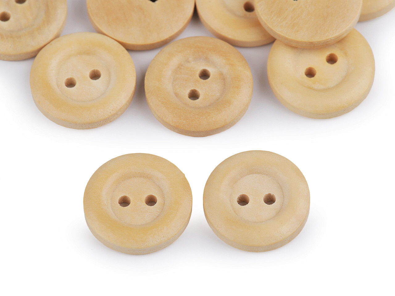 Knoflík se zvýšeným okrajem je vyrobený ze dřeva. Můžete jej přišít na svetry či kabátky nebo použít jako jeden z materiálů na scrapbooking.