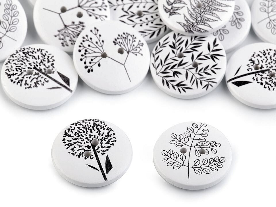 Dřevěný dekorační knoflík rostliny - 25 ks - mix