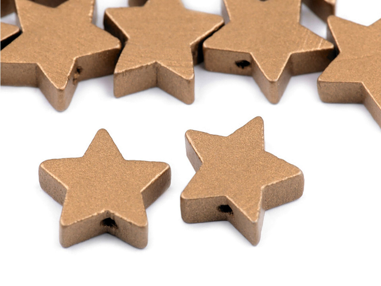 Metalické dřevěné korálky ve tvaru hvězdy o průměru 19 mm v elegantní zlaté barvě jsou perfektním doplňkem pro vaše kreativní projekty. Jejich moderní design dodá vašim výrobkům šmrnc a originalitu.