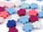 Mix barevných dřevěných korálků květů potěší nejen korálkářky, ale i děti. Jejich velikou výhodou je lehký materiál. Dají se skvěle kombinovat s dalšími dřevěnými korálky, s kulatými ale i s dalšími zajímavými tvary. Jsou oblíbené i na výrobu lapačů snů, dají se nalepit i na přání apod. Můžete je navlékat například na pruženku či silon.