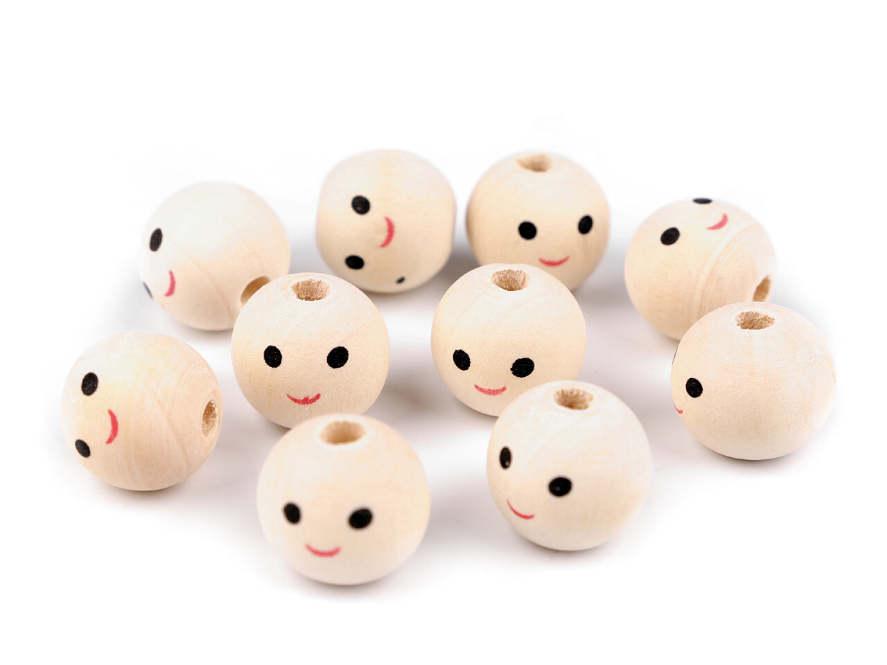Dřevěné korálky s obličejem Ø18 mm - 500 ks - přírodní sv.