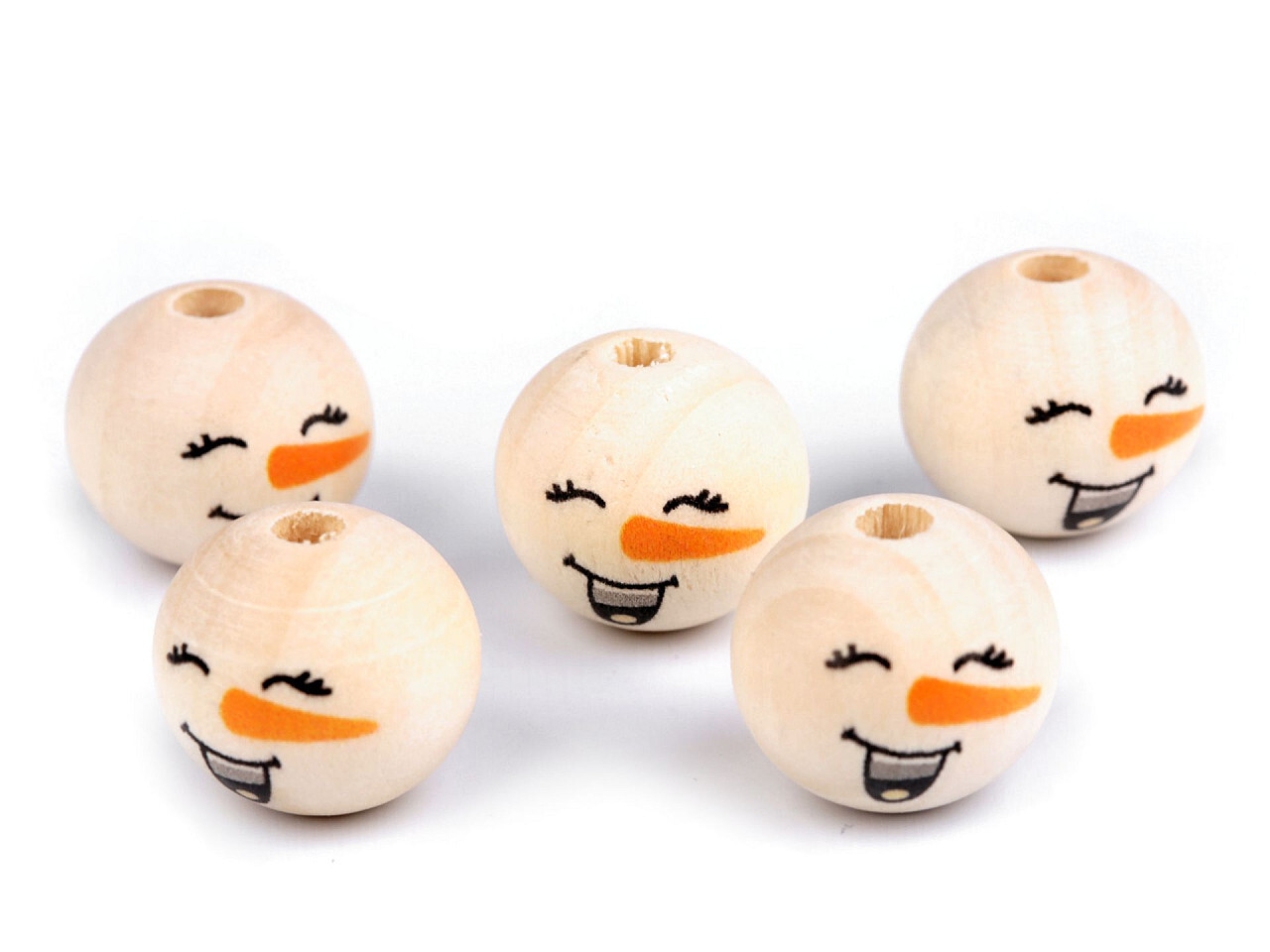 Dřevěné korálky s obličejem sněhulák Ø20 mm - 200 ks - 2 přírodní sv.