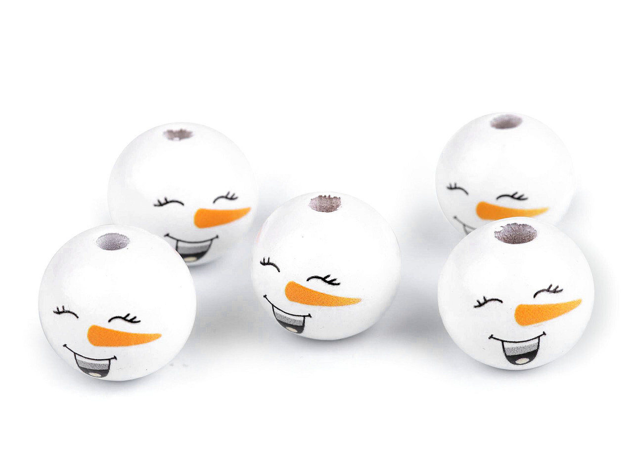 Dřevěné korálky s obličejem sněhulák Ø20 mm - 200 ks - 1 bílá lakovaná