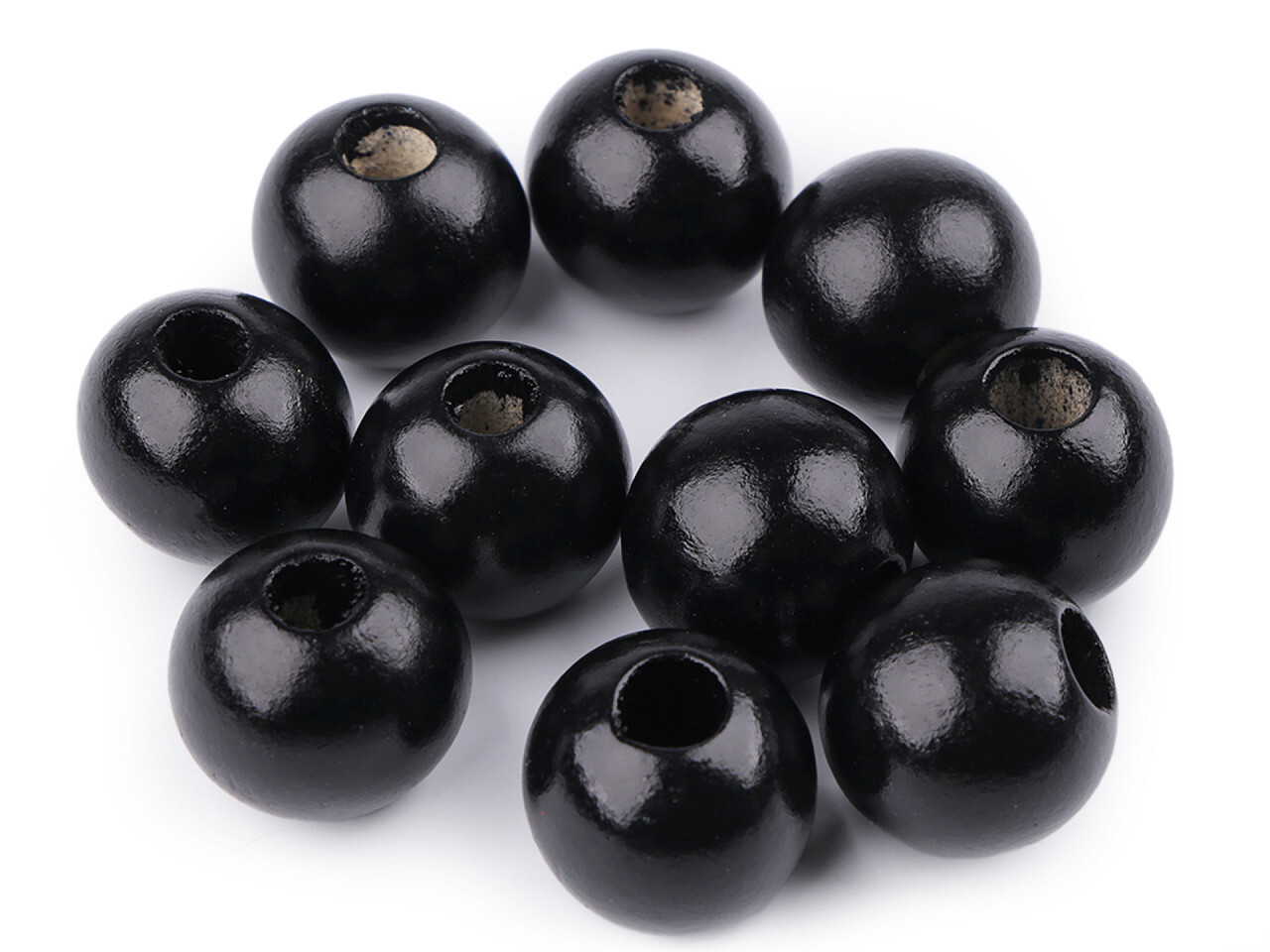 Dřevěné korálky Ø25 mm - 10 ks - 10 černá