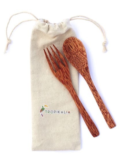 Tropikalia Cestovatel - dřevěný cestovní příbor s obalem - Kokosové dřevo